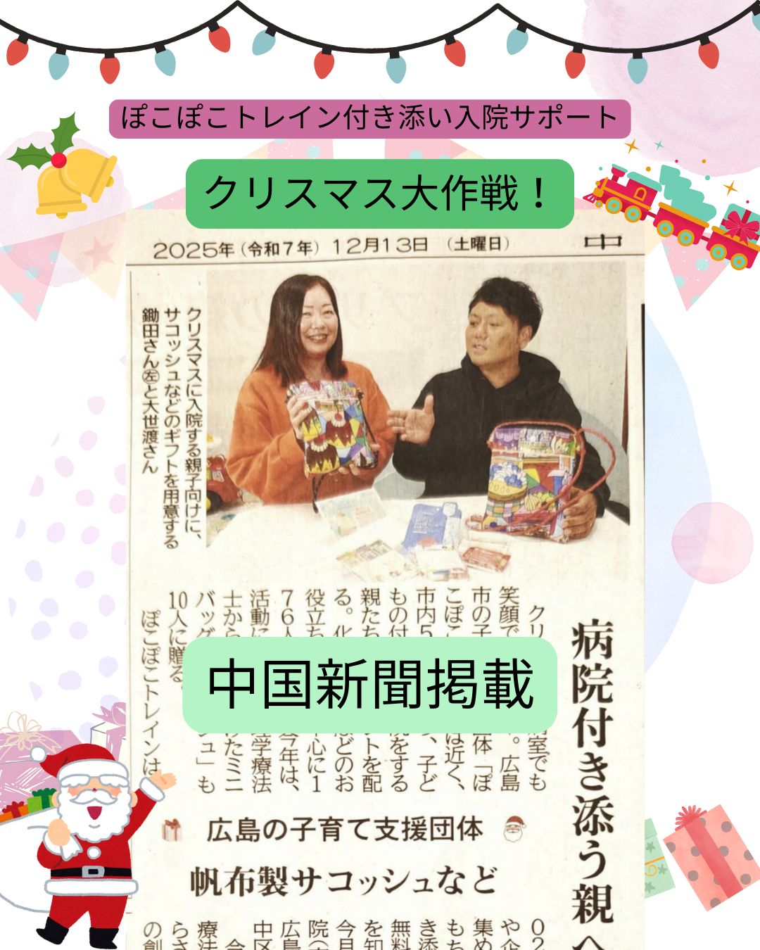 入院に付き添う親にプレゼント 広島の団体 経験生かしたグッズ好評